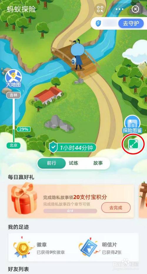 打开蚂蚁探险页面,蚂蚁勇士正勇往直前,选择故事页面,选择借呗闭关挑战;