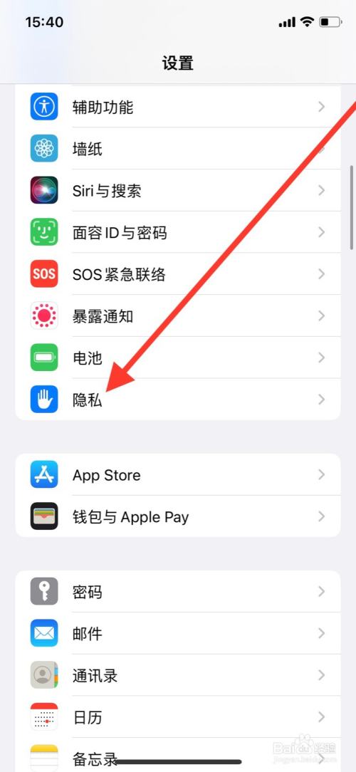 设置显示页面点击“隐私”。