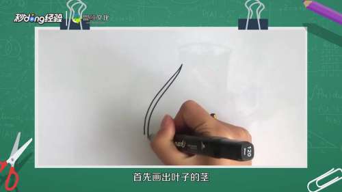 先画出叶子的茎,然后画出一个大水滴形状的叶子。