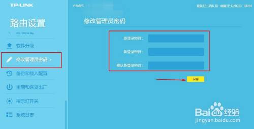 在右侧菜单栏中点击“修改管理员密码”按钮,然后输入旧密码,再输入新密码并确认,最后点击“保存”即可。