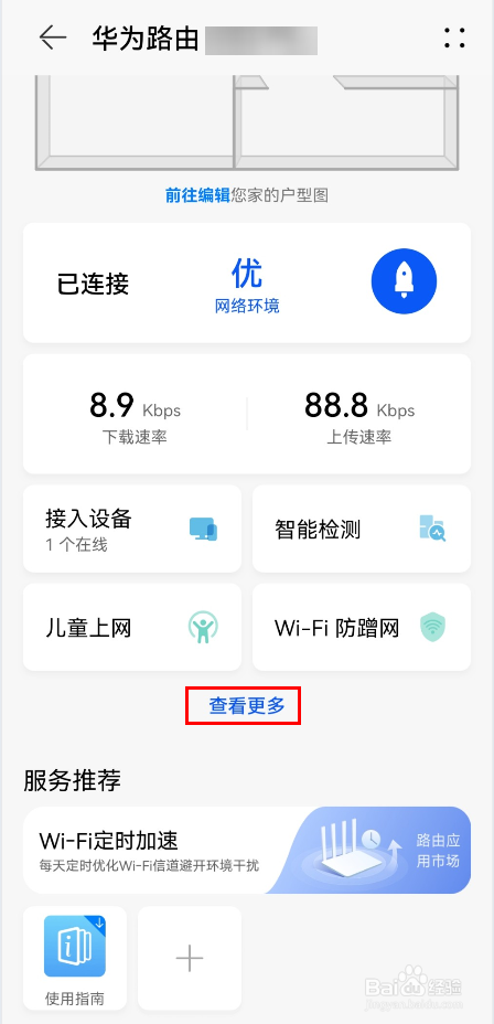 打开路由器页面后,在下方找到“查看更多”按钮,点击进入。