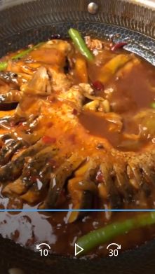 草鱼清理干净改花刀,油热放入花肉炒香放葱姜 干辣椒 火锅底料等放入草鱼。