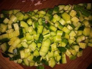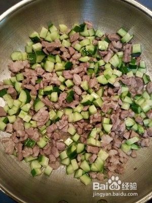 花生油加热,炒肉,肉熟后放黄瓜,翻炒。