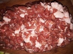 4、花生油加热,炒肉,肉熟后放黄瓜,翻炒。