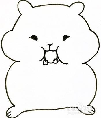 首先画出小仓鼠的头部轮廓,画出仓鼠两只小小的耳朵,再画出肥肥的脸部轮廓。