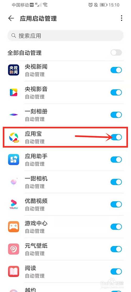 进入应用启动管理界面,找到应用,关闭右侧的开关。