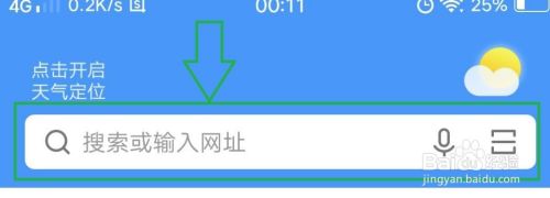 打开手机的浏览器,在浏览器的上方我们可以看到搜索栏。