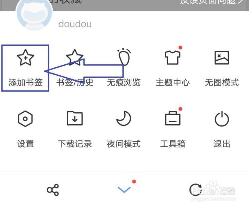 点击“三”的设置标志,弹出下拉子菜单,在子菜单中我们可以看到“添加书签”。