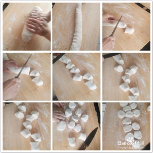 面最终要揉成圆柱的形状,用刀切开,每次切开露出的新面要占一些干面防止粘到面板上,用手按平即可。