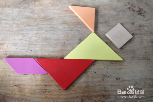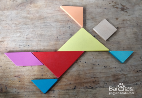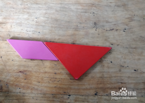 摆上红色三角形,左侧摆上平行四边形挨着,如图。