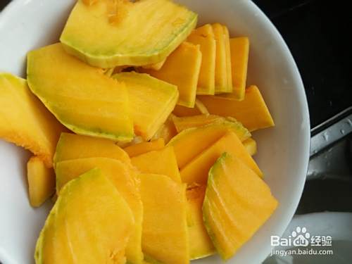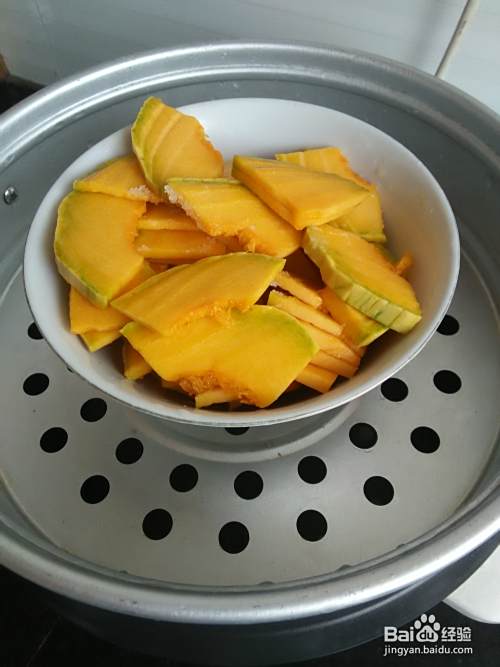 煮饭的时候放在蒸隔上面,米饭好时,南瓜也熟了。
