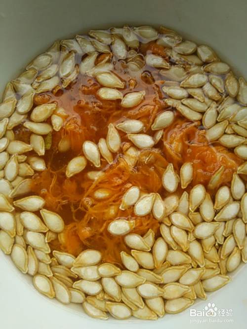 另外,分开的南瓜子也不要浪费,将它们放在水里,用手搓两下,南瓜子就自己干干净净的悬浮在水上。