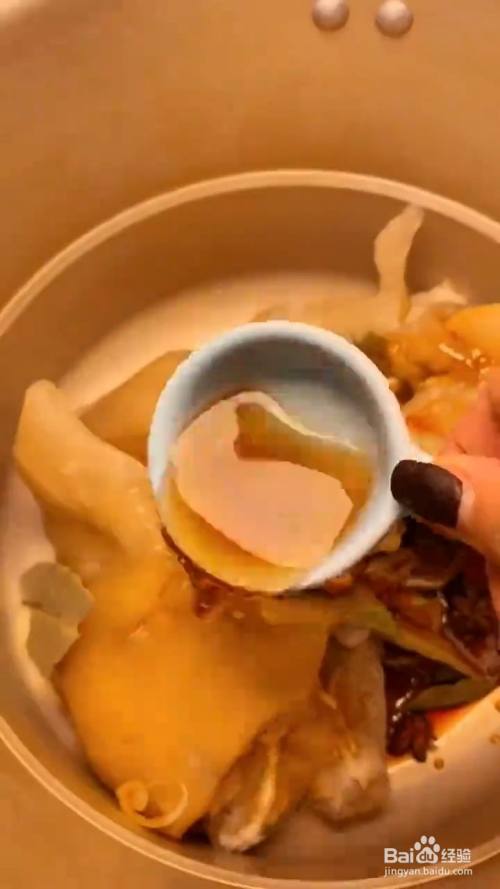 锅中放入一勺水,放入一勺糖,大火翻炒均匀,出枣红色,倒入炒好的糖色,料酒一勺,加入清水,高压锅炖制20分钟即可