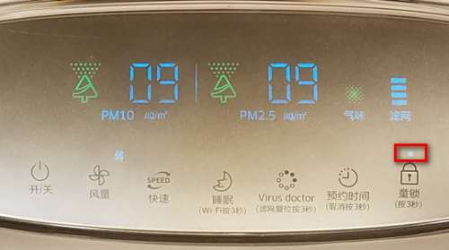 童锁功能是在净化器运行过程中,为了避免操作失误或防止儿童随意触摸而设置的锁定所有按键的功能。如果您需要使用童锁功能请按以下方法操作:
