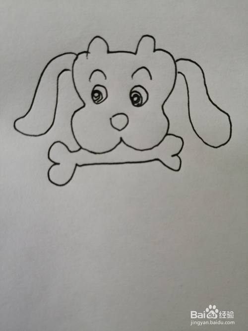 第五步,然后继续画出可爱的小狗的嘴巴上的骨头,注意骨头轮廓的画法。