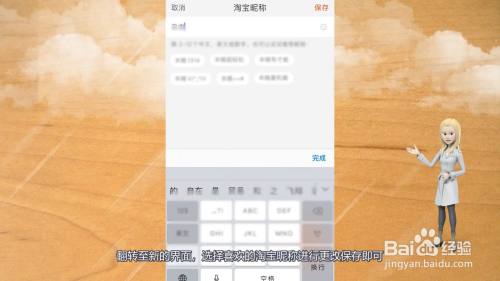 翻转至新的界面,选择喜欢的淘宝昵称进行更改保存即可。