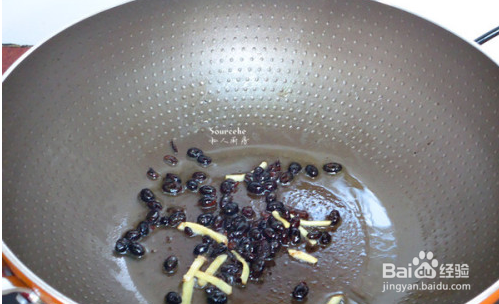 2.热锅,炒苦瓜六成熟,起锅,热锅,倒油,小火香煎豆豉、葱白。