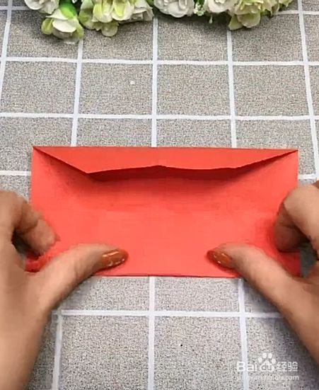 第二步我们将四个角向里按照最小的正方形对折,然后两两对折,整体翻面,将两个边对折到中线,然后对着扣在一起,形成一个三棱柱。