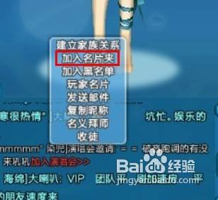 把鼠标移动到想要加入联络人的网名上面。然后点击右键。在弹出的窗口上面选择加入名片夹。