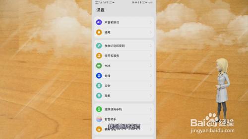 在华为手机的设置界面中,找到隐私选项,点击它。