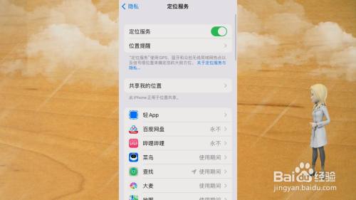 在隐私界面里,找到定位服务选项,点击它进入新界面。