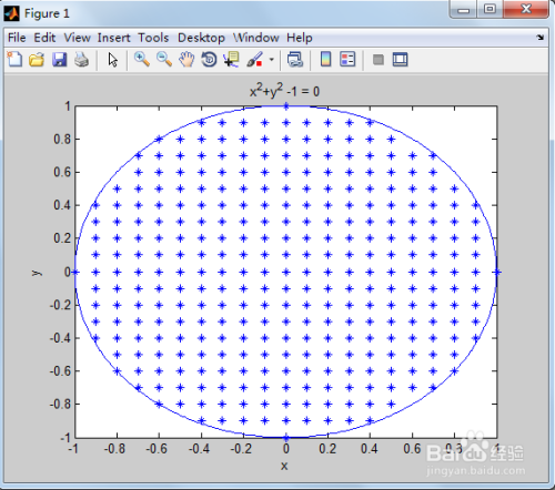 在画二维图时候,画一个圆面往往需要画出内部的一部分点,才能将圆面和圆弧区分开来。这里介绍MATLAB怎样绘制一个圆面。