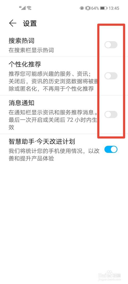 最后将搜索热词、个性化推荐、消息通知【全部关闭】即可。