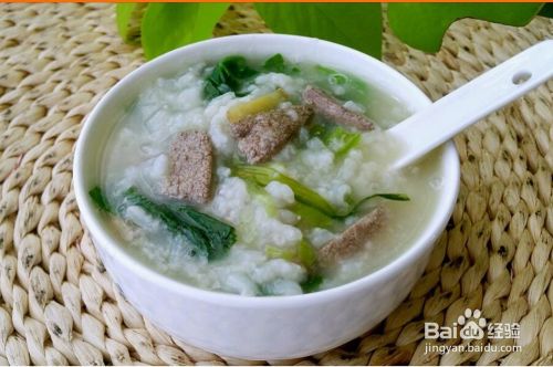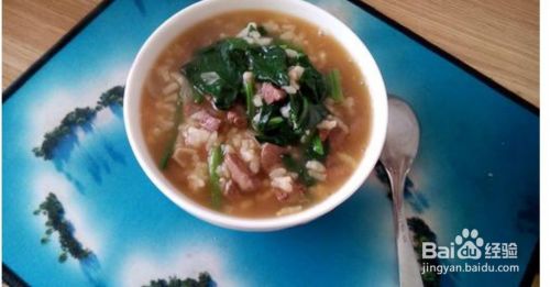 煮至粥稍稍粘稠,把姜片捞出,放入葱花末,放少许盐和味精,最后放入焯好的波菜。