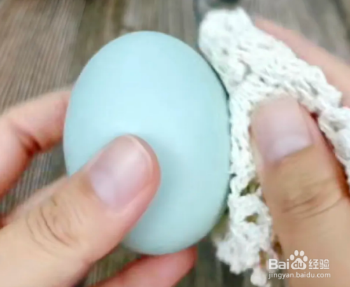 清好的鸭蛋晾干水分后,找一张干净的小布,用抹布蘸上白醋,之后用沾有白醋的布条擦在鸭蛋的表面,要整个都擦均匀,静置15分钟左右。