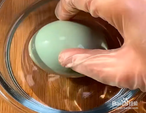 用一个大一点的碗倒入高度白酒,然后把擦过白醋的鸭蛋整个放入白酒的碗中,让鸭蛋泡上一层白酒。