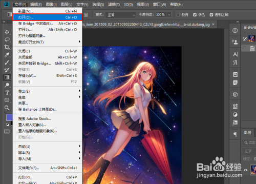 首先打开ps,并且通过ps文件菜单下的打开命令打开一张任意图片。