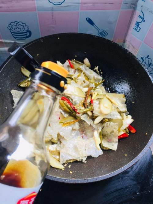 2酸萝卜洗净切片,酸辣椒个小米辣切成丝,蒜瓣拍碎切成小丁,生姜切丝,小葱切成段备用!