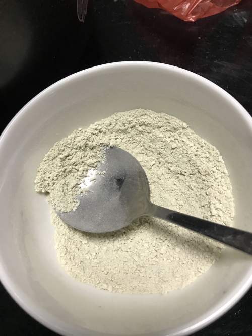 3在等候糯米饭降温的空隙,用条匙把酒曲碾成粉末待用!