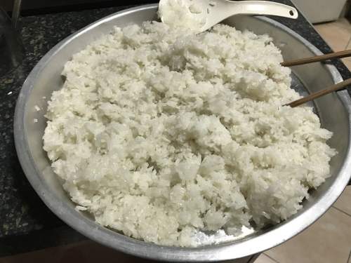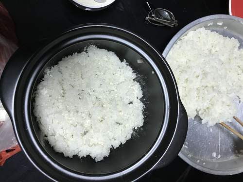 2糯米洗净做成饭,把糯米饭打散放在干爽没油的托盘上降温!降温至有点点暖手为宜,太烫酒味会酸!