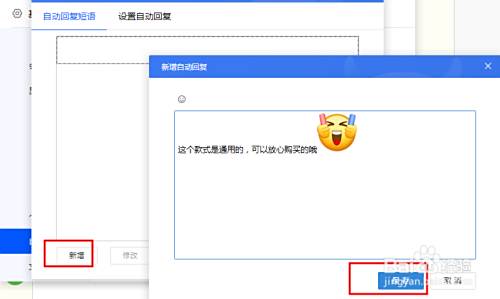 进去自动回复短语里面,选择【新增】。编辑好需要的快捷短语,点击确定就可以了。