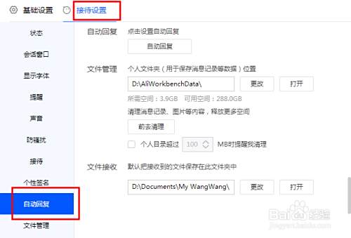 设置进去之后选择【系统设置】,弹出系统设置的对话框。在【接待设置】下面选择【自动回复】。