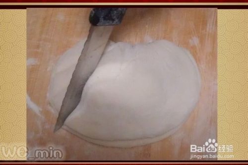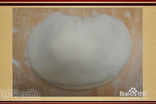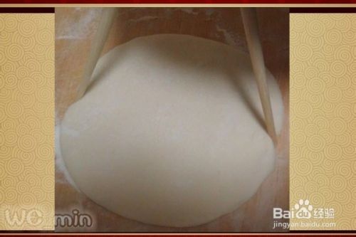 第二步,取一个面剂子,用擀面杖稍微擀一下,不用太薄。