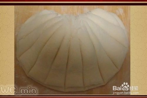 第六步,用洗干净的水果刀背面,在“扇贝”上面轻压出凹痕,最后形成扇贝壳条纹的样子。然后上锅蒸15分钟左右。