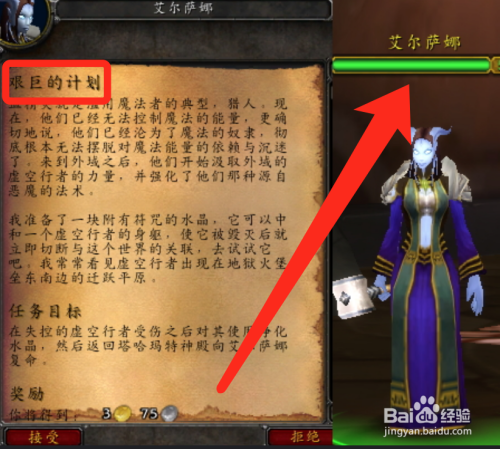 第二步;然后找到NPC艾尔萨娜交谈接取任务。