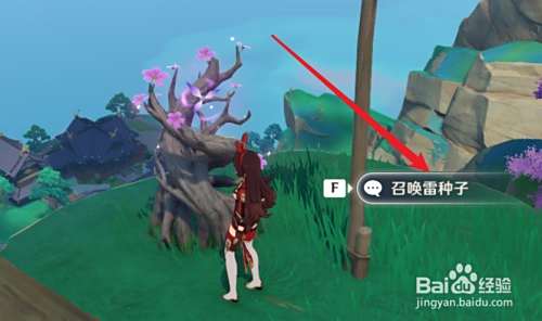 来到鸣神大社右上角的绿色箭头所在位置,有一个雷樱枝条。