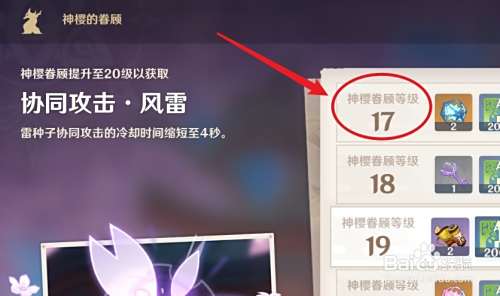 来到鸣神大社的神樱处,将神樱眷顾等级提升至17级。