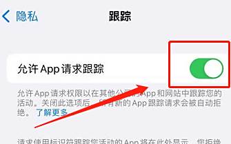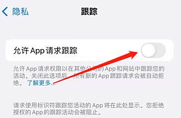 进入页面后,把【允许App请求跟踪】对应的开关按钮关闭,如图所示。