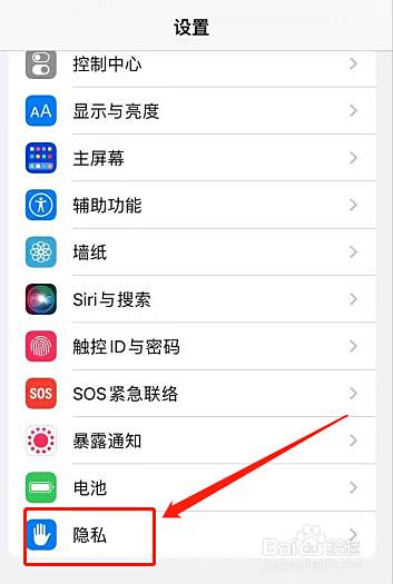 在手机上找到【设置】图标,进入后点击【隐私】,如图所示。