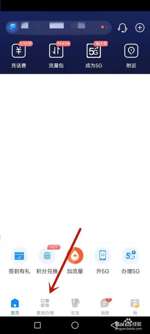 电信营业厅app页面,点击选择左下角查询办理项目。