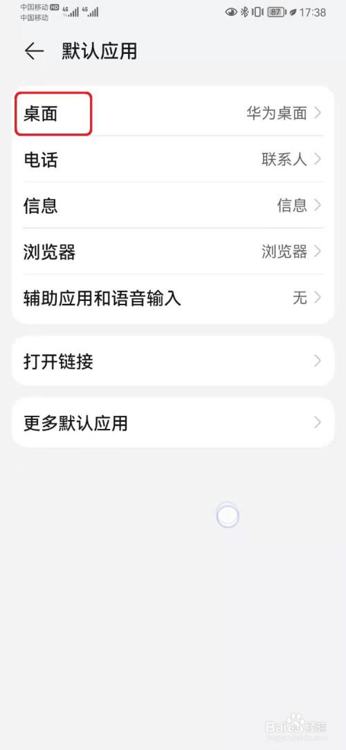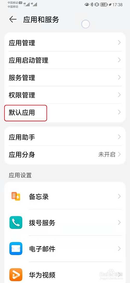 在华为手机上,通过应用和服务的默认应用管理进行桌面默认设置的方法。