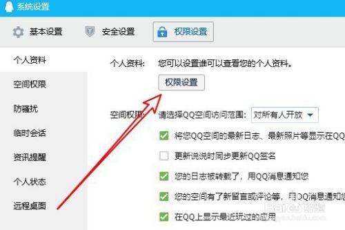 这时会打开QQ的设置页面,在页面中找到使用权限的选项卡。