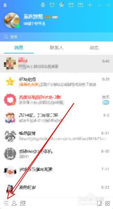 首先在电脑上打开QQ,点击QQ软件主界面左下角的主菜单按钮。