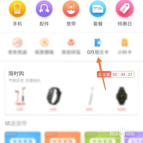在商城界面中,点击“0元月租卡”,进入月租卡的办理。