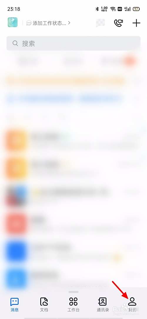 在钉钉首页页面,点击 我的;