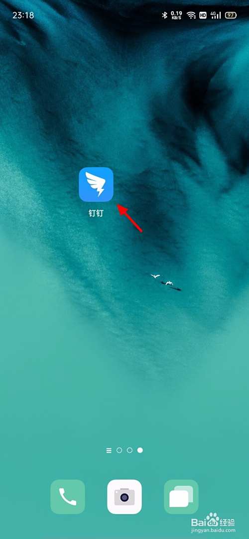 手机开机,在手机桌面打开 钉钉;